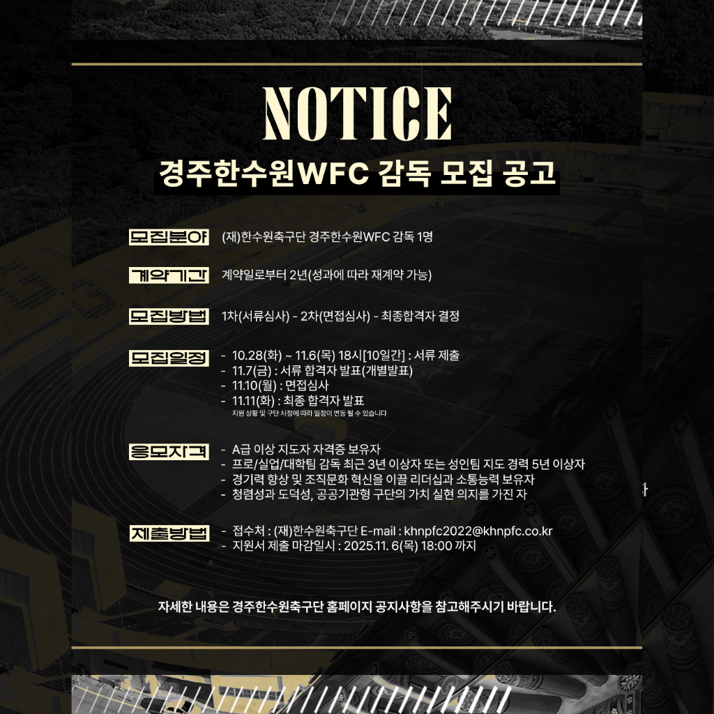 경주한수원 여자축구단 감독 모집공고